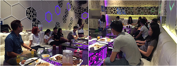 到了周日,我们还一起去了KTV唱歌,一起吃自助晚餐,歌声阵阵,笑语片片,大家其乐融融,此时此刻每个人的脸上都绽放着甜美的笑容。